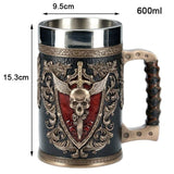 This Skull and Sword Beer Mug will delight beer lovers who want to drink their favorite beverage in an exceptional container. This mug features a shield with a sword and a winged skull on top. Buying this mug will guarantee you long hours admiring it from every angle!